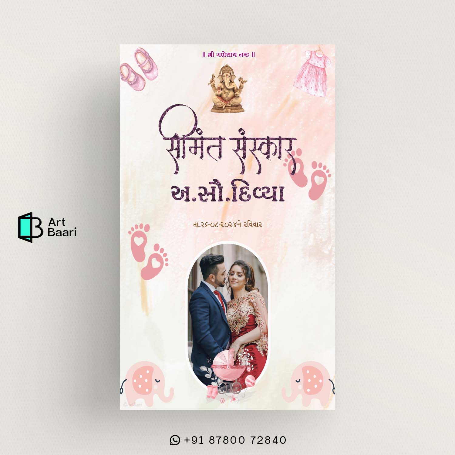 Baby Shower Invitation Gujarati || Simant Vidhi Card || Digital E Invite || New Theme Design- BSG40049