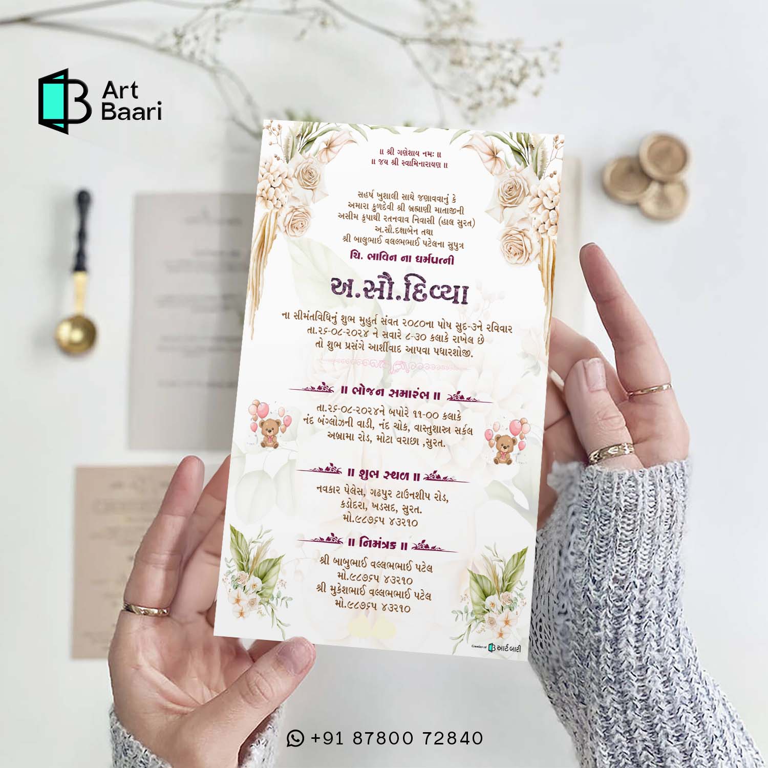 Baby Shower Invite in Gujarati || Best Simant Vidhi || Digital E Invite || Modern Satyle – BSG40048