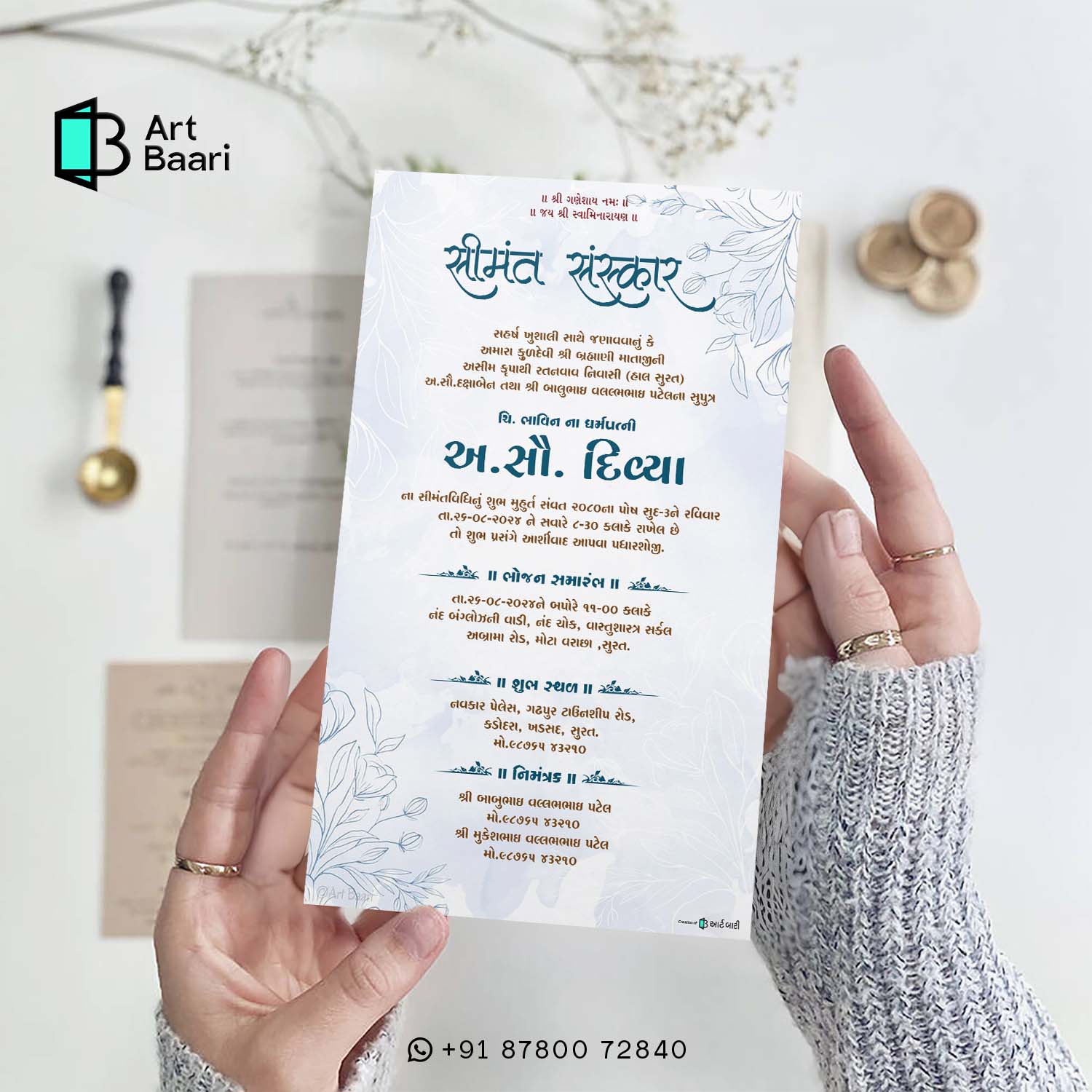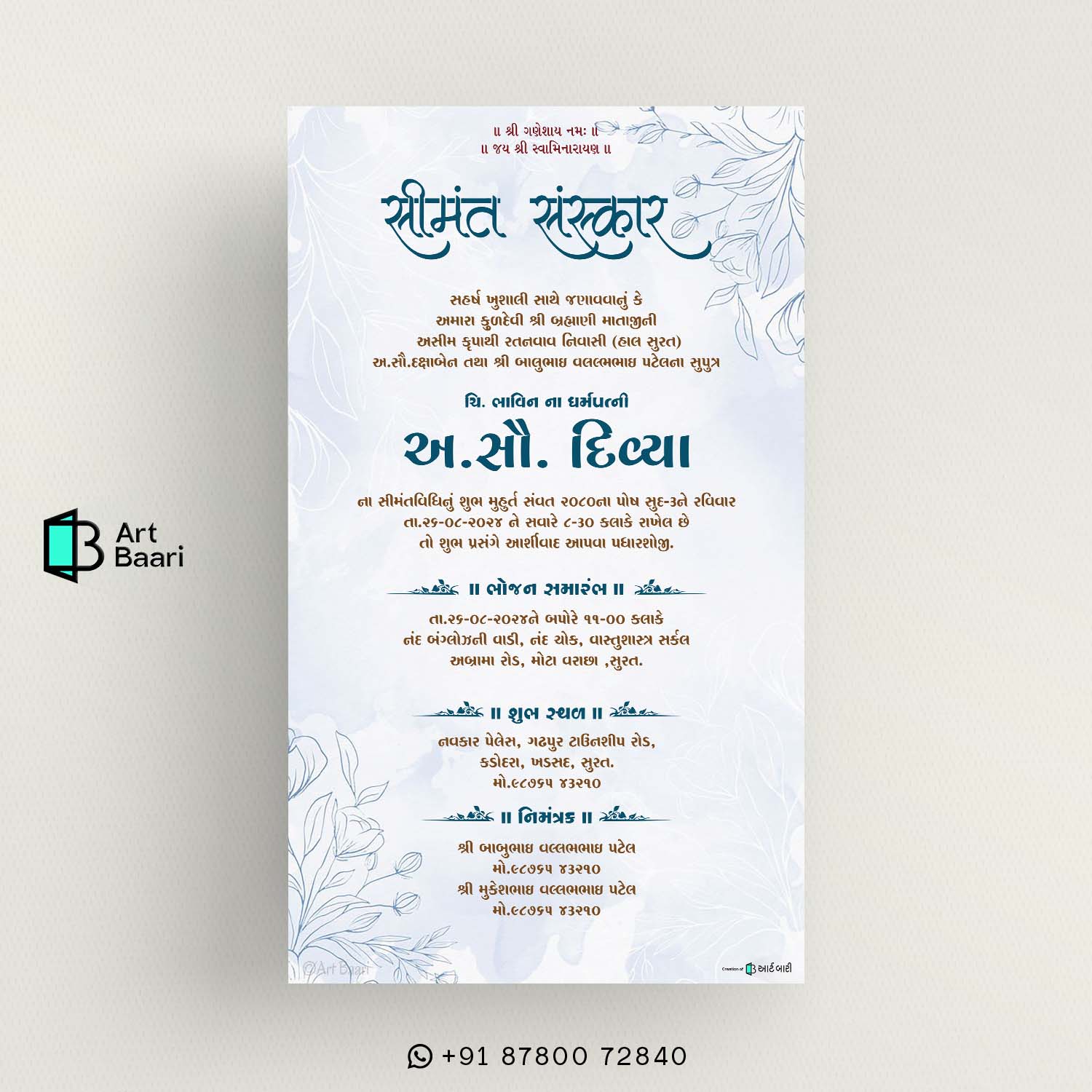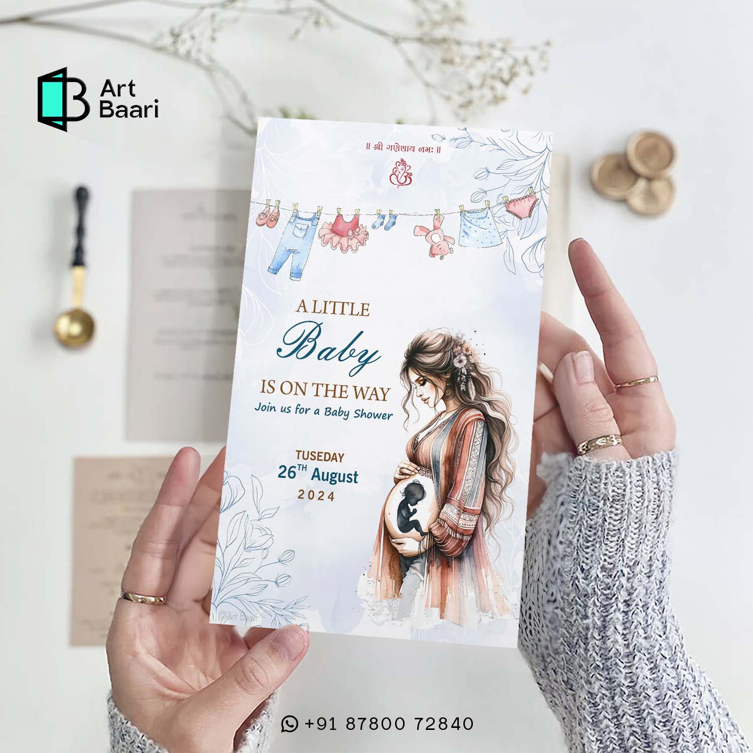 Gujarati Baby shower invitation || Indian Baby Shower || Digital E Invitation || Flower Clothe Woman water Color Theme Design – BSG40040