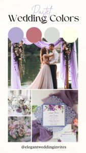 Pastels like light purple, pale pink, light blue, and mint green are often used in spring weddings. But you can mix in darker colors like burgundy or black to make them work for any time of year.